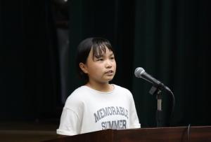 最後に、児童を代表して香々地小学校6年の堤 加帆さんから「私は、今日の研修をとても楽しみにしていました。理由は、豊後高田市に生まれ育ち、これまでに知らなかった市の名所や史跡の素晴らしさを自分たちの目や耳で直接感じて学ぶことができるからです。今日の研修を通して学んだことを、同じ市内に生まれ育った私たちがふるさとに誇りを持ち、これからの未来に夢を抱いて力強く羽ばたいていくときの宝物にしたいと思います」とあいさつがありました。
