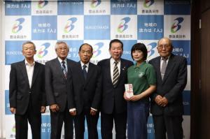令和5年10月10日、豊後高田そば生産組合の新旧代表と全日本素人そば打ち名人大会に出場する青山由香里さん(豊後高田そば道場講師)が、佐々木市長を表敬訪問しました。