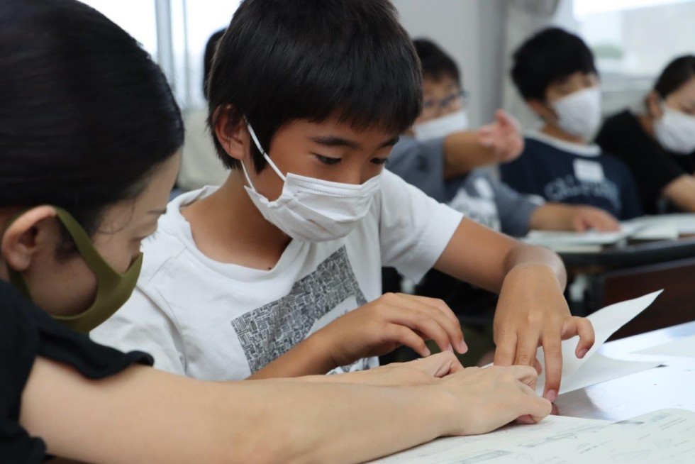 開講式に引き続いて行われた第1回活動は「紙飛行機を作ろう」。栢岡会長が紙飛行機の種類を説明した後、今回挑戦する「へそ飛行機」の折り方を実演し、「重なる所は少し間を開けるのがコツだよ!」などアドバイスを交えながら説明。子どもたちは、指導員や保護者のアドバイスを聞きながら、紙飛行機を作り上げました。