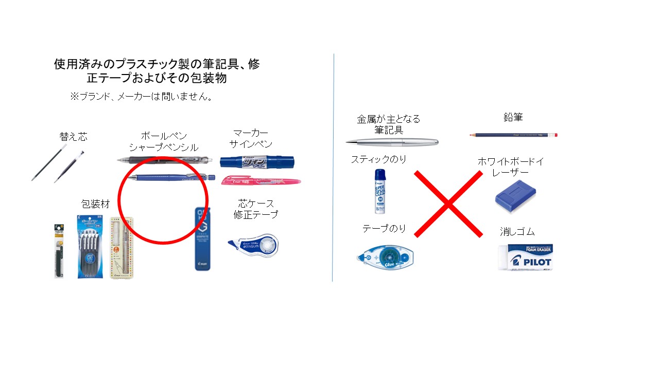 ※事業系ごみに該当する使用済みペン等(事務所や工場などで出たもの)は回収対象外です。