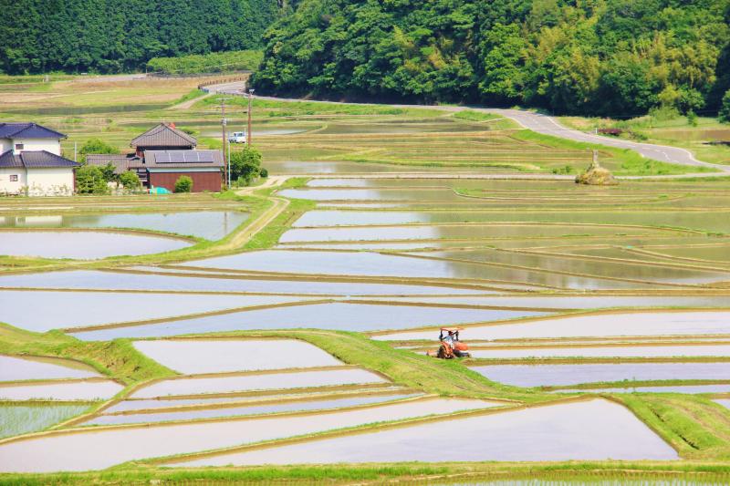 水を張った水田の水面に映り込む景色もまたいっそう美しいですよ。