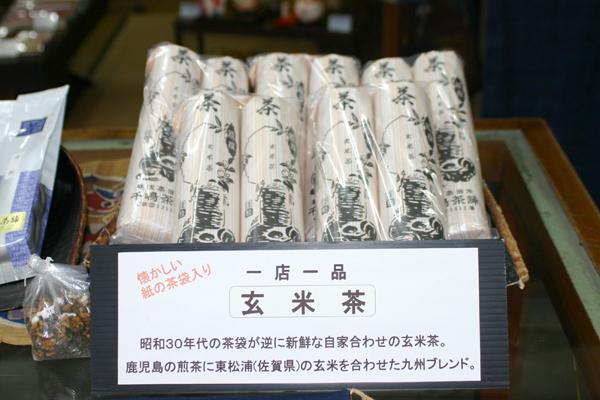 一店一品の、昭和30年代の茶袋入りの玄米茶です。鹿児島産の煎茶と佐賀の東松浦の玄米を合わせた九州ブレンドです!二本入りで600円となっています。